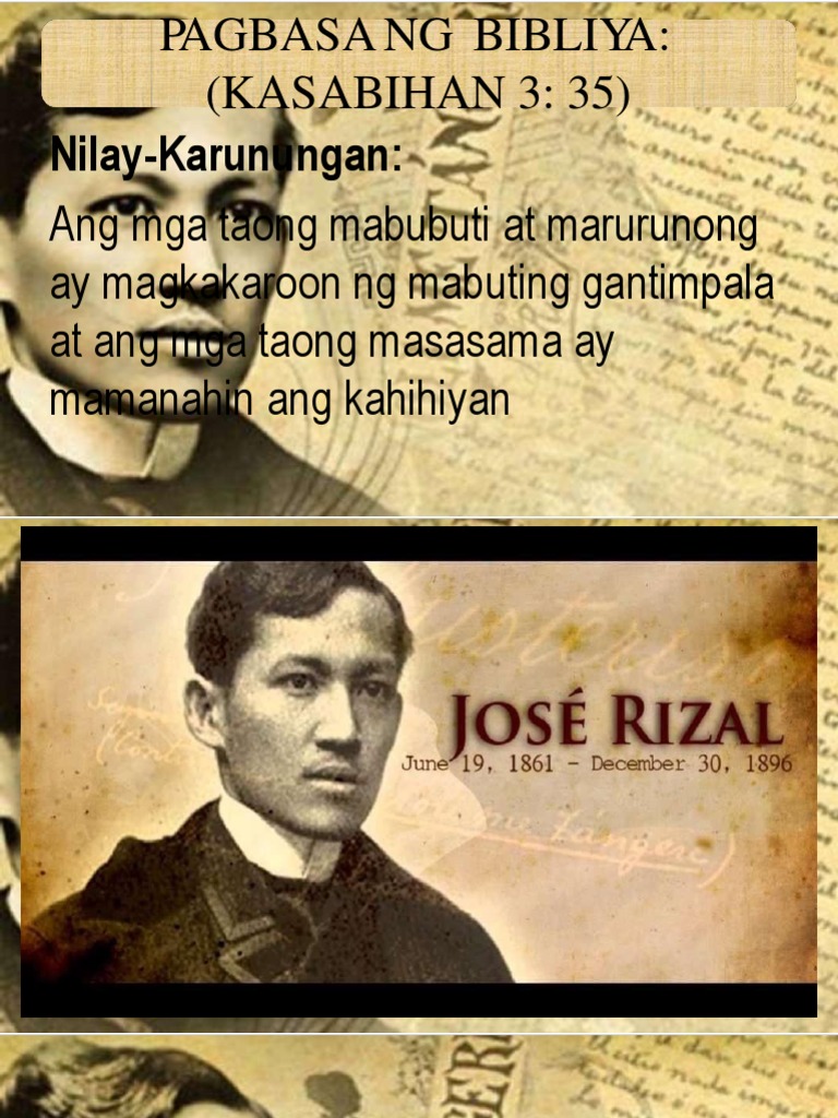 Pag asa na hindi dapat matakot at magpapigil kahit na sa kanilang pinakamamahal na magulang upang magsilbing liwanag sa kanilang kababayan at pamarisan ng lahat ng mamamayan hanggang sa kamatayan. Ang pinaka nakakahanga kay Rizal ay ang hindi na niya pag-isip sa kanyang sarili ang kanyang kumpletong pag-iwan sa kanyang personal na interes para lamang isipin ang kanyang bansa Rafael Palma. Tulad ng nobelang noli me tangere el felibesterismoat marami pasa pamamagitan nitonag-alsa ang mga pilipinosabay ng pagkamatay ni rizalat doon na siya ginawang bayani.