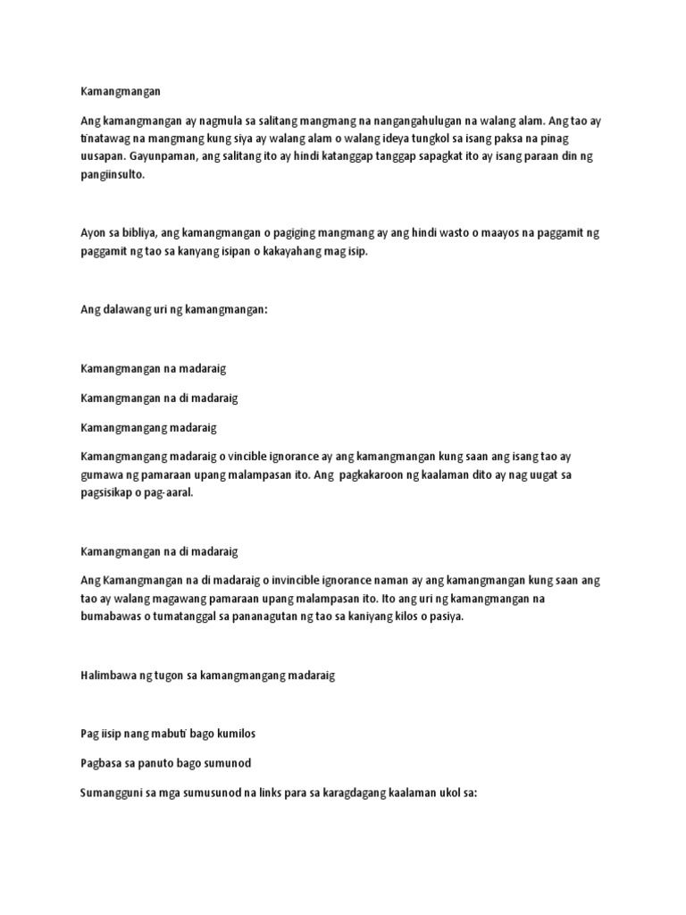 Alin Sa Sumusunod Na Halimbawa Ang Hindi Madaraig Ng Kamangmangan