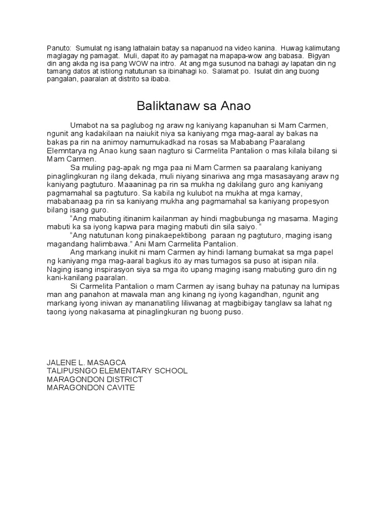 Ito ay hindi dapat napakahaba iwasan ang pamagat na patanong at kailangang nakakapukaw ng kalooban-2. Inutusan ka ng iyong ina na bantayan ang iyongnakababatang kapatid habang siya ay patungo sa tindahan2. Isulat ang iyong sagot sa sagutang papel1.